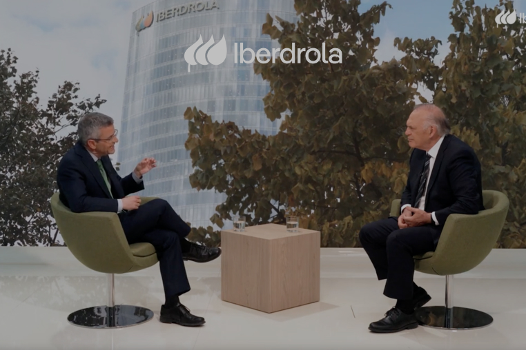 La electrificación, clave en el mundo actual, con el periodista Pedro Piqueras y Gonzalo Sáenz de Miera, director de Cambio Climático y Alianzas de Iberdrola.