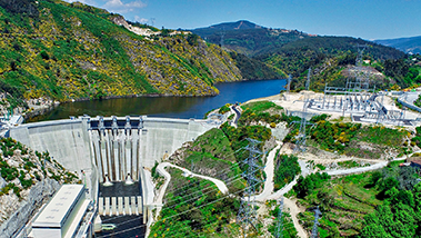 El complejo hidroeléctrico de Tâmega, situado en el norte de Portugal, es una de las mayores iniciativas energéticas en la historia del país y uno de las mayores instalaciones de almacenamiento de energía de Europa. Este sistema incluye tres presas con una capacidad instalada conjunta de 1.158 MW y dos parques eólicos que alcanzarán los 274 MW .